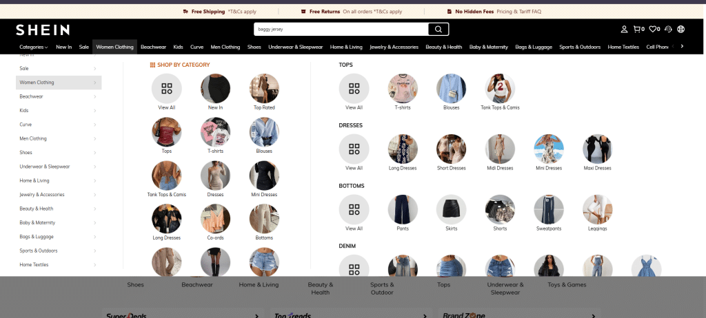 Ženska oblačila v trgovini Shein