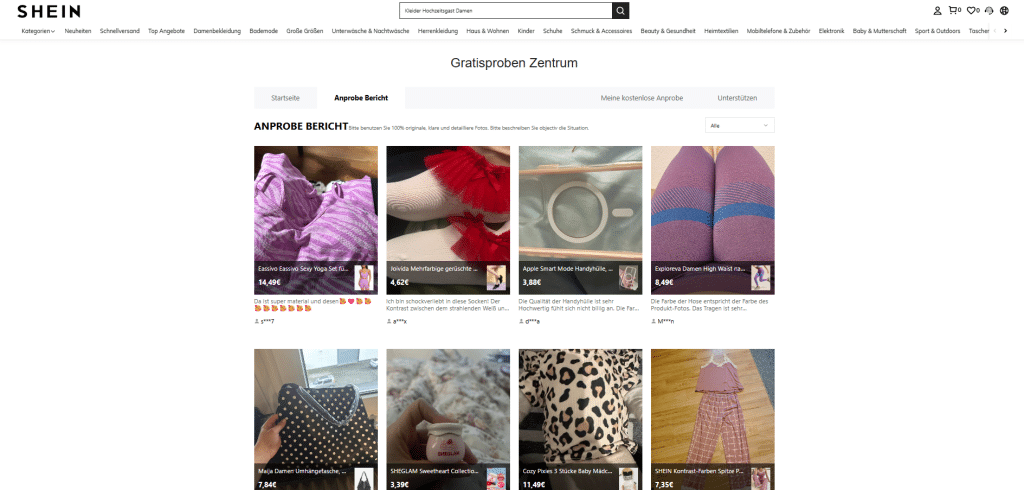Im Gegenzug verpflichten Sie sich als Produkttester*in, innerhalb eines festgelegten Zeitraums (in der Regel 10 Tage nach Lieferung) eine detaillierte, ehrliche und bildreiche Bewertung abzugeben. Dieses System dient der Qualitätssicherung und Marktanalyse und ist das zuverlässigste Programm für kostenlose Shein-Kleidung.